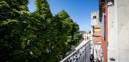 Room 202 is classically furnished in naturally warm tones, which blend in with the Motovun surroundings. It is located on the second floor and has a balcony that belongs to the original part of the house from the 17th century. The glass wall on the balcony enables a great amount of daylight and airiness. This room has a beautiful view that goes over tops of century-old chestnut trees towards the Motovun surroundings.