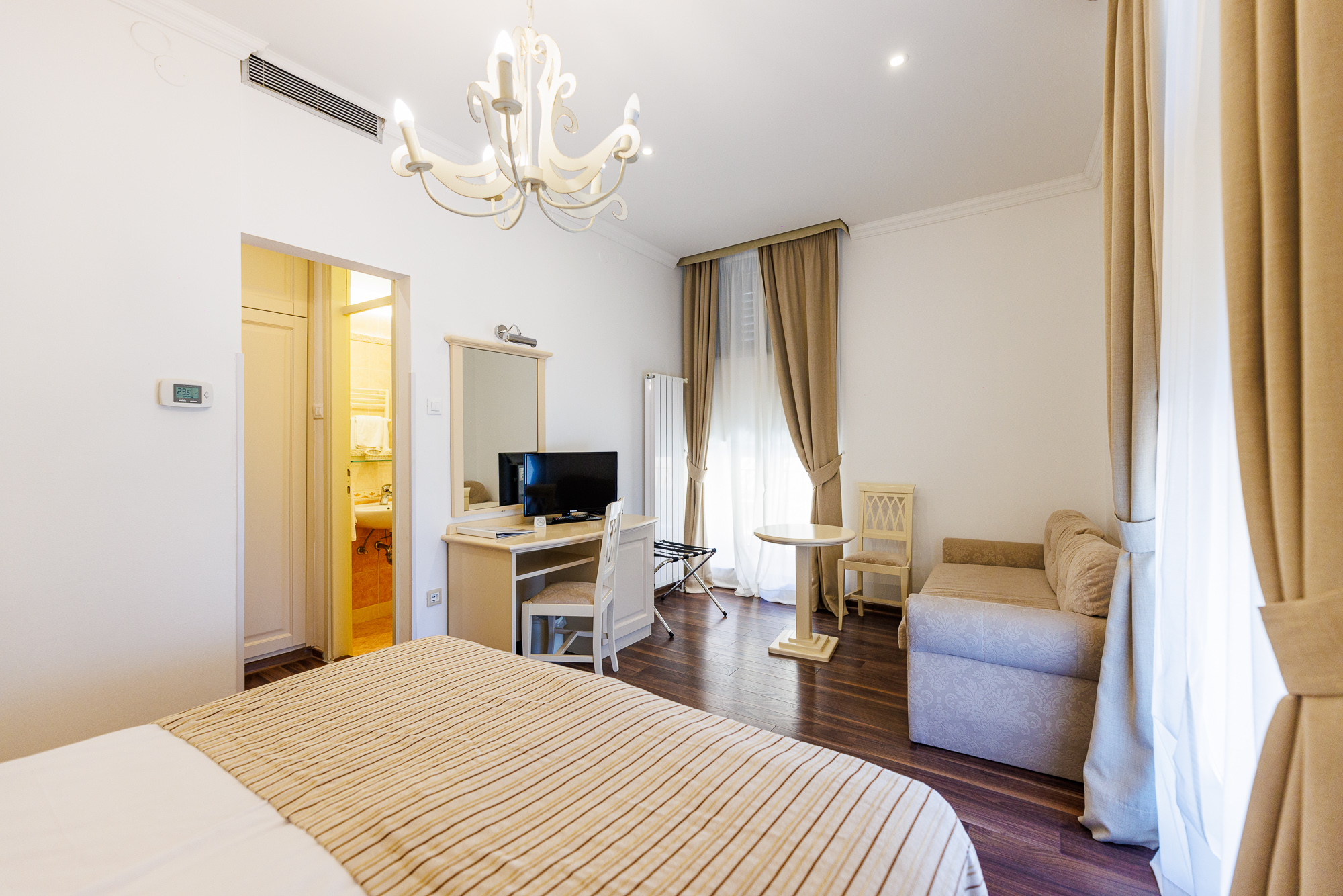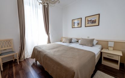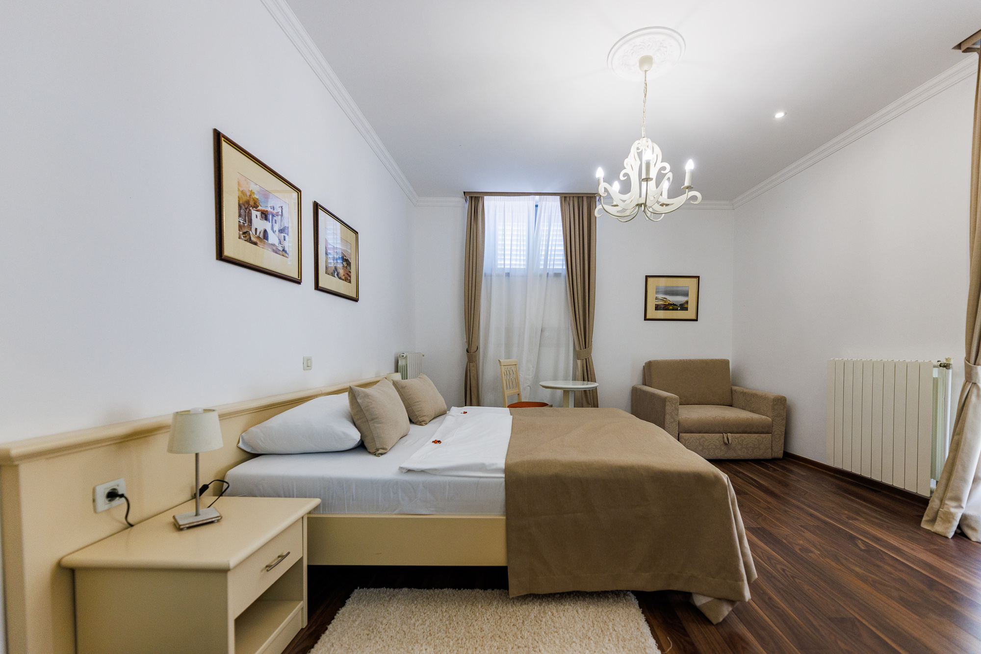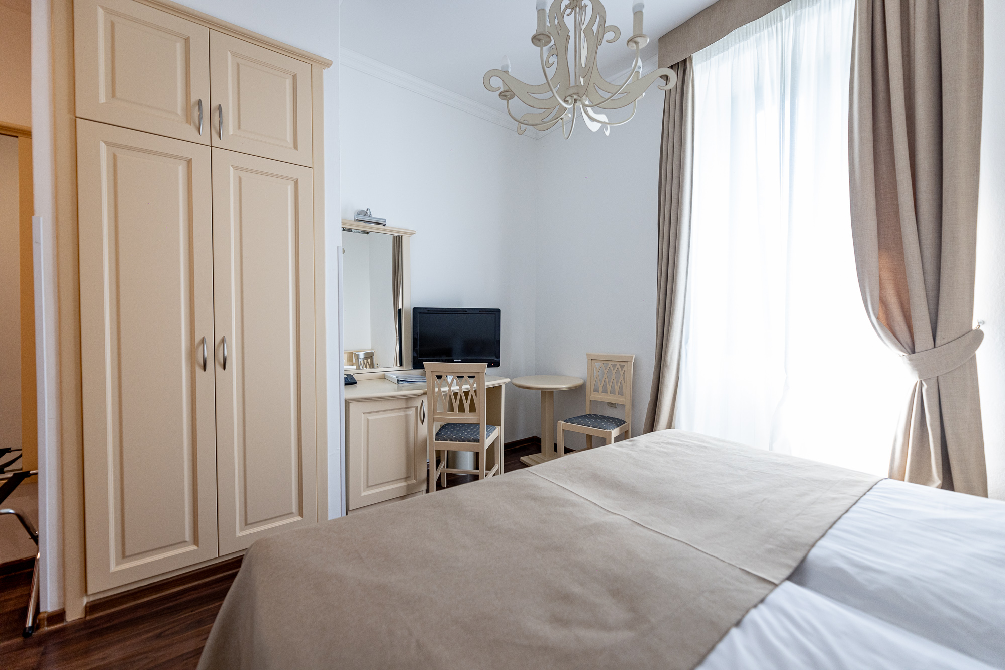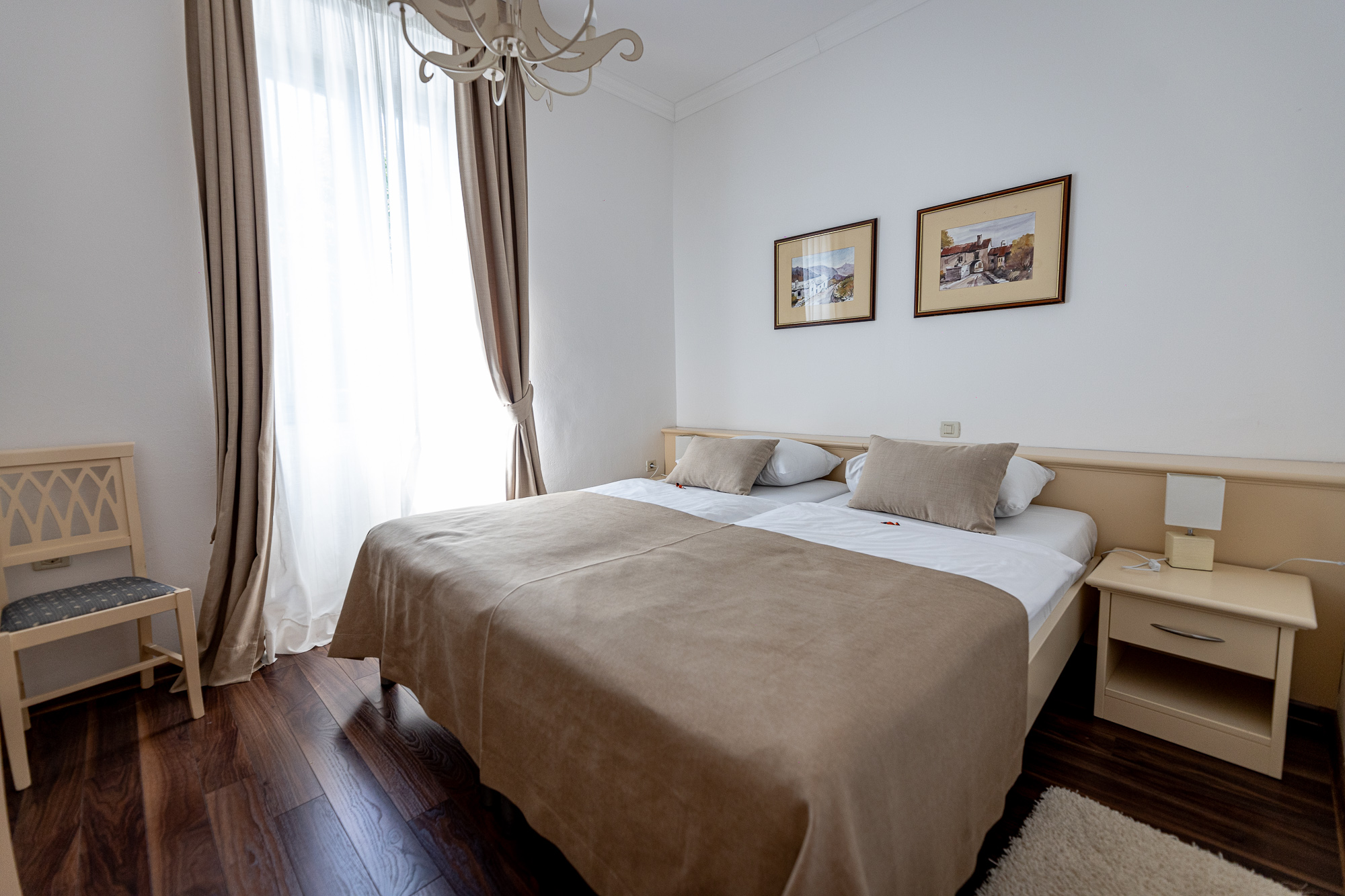The standard double room offers a comfortable and relaxing stay for two. The room is elegantly decorated with modern furniture and warm tones that create a pleasant atmosphere. It is equipped with either a double bed or two separate beds, depending on the guests' preferences.